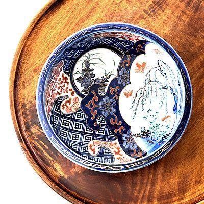 明治期の古伊万里染付赤絵金彩盛鉢です。